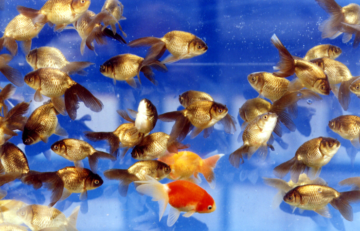 この低温を経過することによって、4〜5月の計画的な産卵が可能となります。生まれた仔魚も強健なものが多く、成魚も、ランチュウなどと異なり、機敏な野性的な金魚に育っています。
